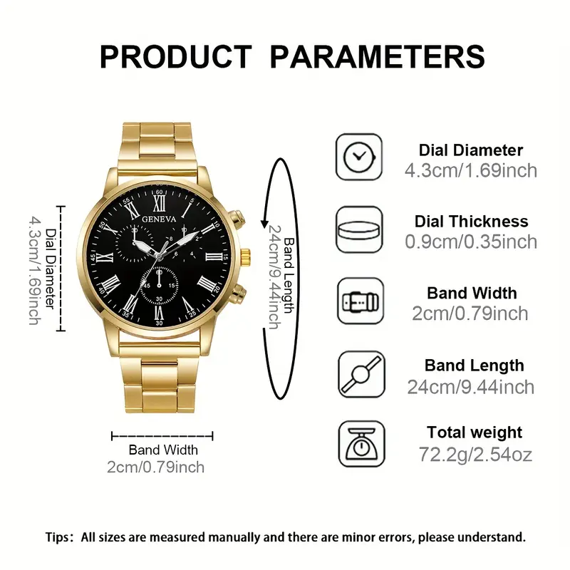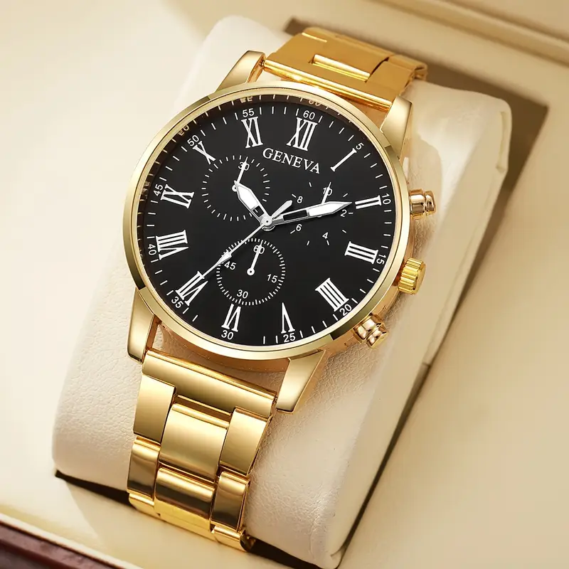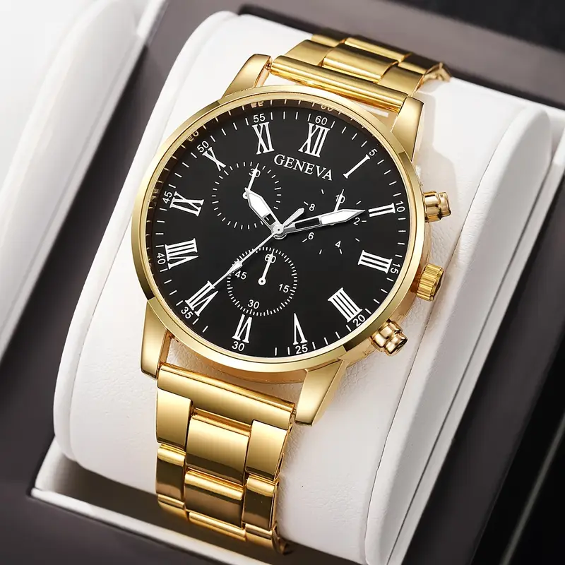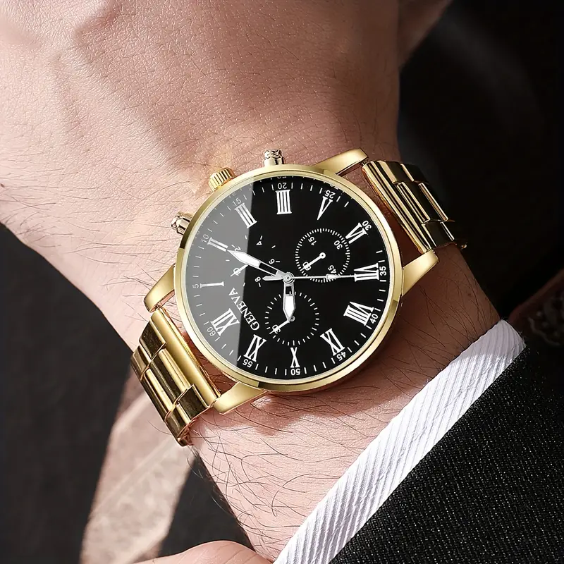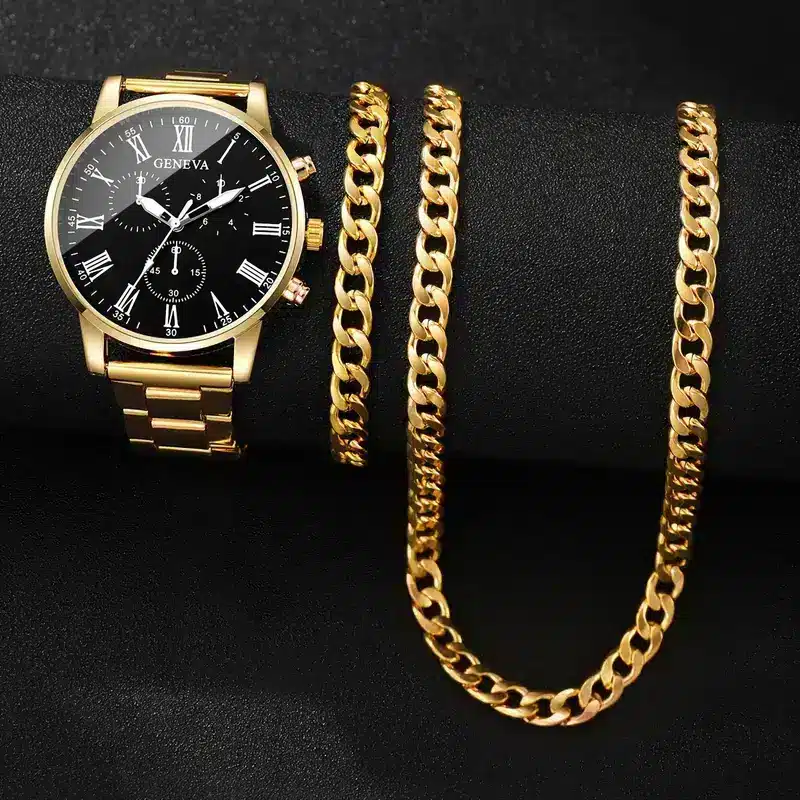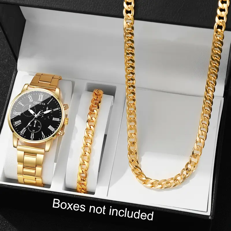 Ensemble montre à quartz avec chiffres romains, collier et bracelet pour homme – Cadeau idéal pour la Fête des Pères, la Fête des Enseignants, Thanksgiving, les diplômés et les anniversaires (3 pièces)